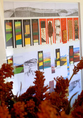 Initially I made a key collection of the colours and textures of the Liverpool Plains food producing region, which gave me the colour palette I used for all the final exhibition artworks. This process contributed to my growing feelings for the Plains. This 'key' grew into a large artwork, and was sold in the exhibition!